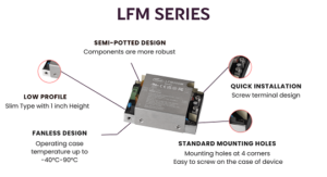 The LFM200M series by Cincon represents a major leap forward in power supply technology, delivering 200W of output power within an impressively compact frame of just 3.09” x 2.28” x 1”. This design breakthrough ensures the power supply meets both high-performance and space-saving needs, making it ideal for a range of applications where size and efficiency are crucial.