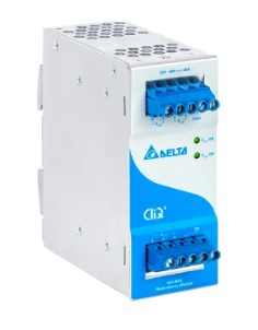 The Delta DRR-40A is a robust DIN rail redundancy module designed to ensure continuous operation in 24VDC systems up to 40A. It enables N+1 redundancy, allowing two power supplies to operate in parallel and maintain system uptime in case of failure.